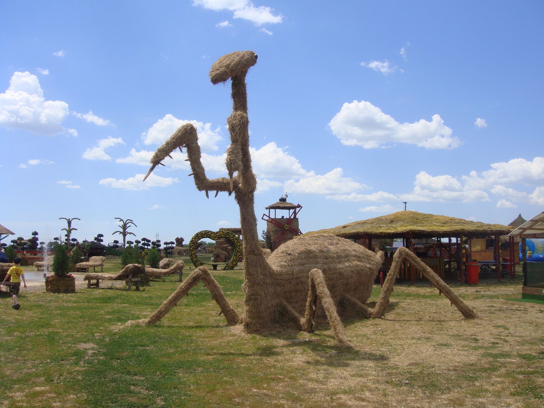 По парку поводят увлекательные экскурсии. В парке много оригинальных, соломенных строений и более 20 фигур. Они изготовлены из соломенных рулонов, тюков и матов, благодаря фантазии сотрудников парка. Здесь есть и бык с коровой, и страшная кобра, и слон, и даже змей Горыныч. Ну а пирамида Хеопса привлекает массу гостей своими размерами и таинственным входом. Когда вы входите, из полумрака появляется настоящая мумия. Которая начинает издавать страшные звуки. Многие боятся даже заходить.